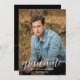 Este elegante anúncio de formatura fotográfica mostra nossa foto na frente junto com seu nome, escola e a palavra formando em letra chic. Altere o texto no verso para seu próprio anúncio ou como convite de festas. CORRESPONDENTE a itens na nossa coleção.