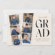 Anúncios de graduação em tendências apresentando uma fita com 6 fotos quadradas do formando. O "Formando" é apresentado em caracteres negros modernos, com fundo creme. Personalize a frente do anúncio de formatura multifoto, adicionando o nome do formando, o nome da escola e o ano de formatura. O lançamento é revertido para exibir texto adicional, como detalhes de graduação, planos futuros, informações sobre o partido, etc. O anúncio da graduação em na moda é perfeito para formandos de segundo grau e faculdade.