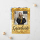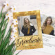 Anúncio de fotos da graduação em brilho dourado elegante com seu nome de segundo grau personalizado e sua classe sob sua imagem de retrato do mais velho de tendência. Personalize essas belas cartas para uma mais velho formada na classe de 2023. Personalize com uma fotografia em forma de segundo na parte traseira, juntamente com os detalhes do início.