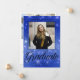 Anúncio de fotos da formatura do sparkle azul-chic com seu nome de segundo grau personalizado e sua classe sob sua imagem de retrato do mais velho de tendência. Personalize essas cartas elegantes para uma mais velho formada na classe de 2025. Personalize com um segundo de uma bela fotografia de estudante no verso, juntamente com os seus detalhes de início.