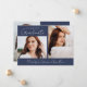 Anuncie suas conquistas e planos de seu formando, com este anúncio moderno da graduação de fotos. A frente do anúncio exibe 2 fotos - 1 fotos horizontais e 1 fotos verticais. O "Formando" é exibido em um script branco de tendência, manuscrito com um fundo de marinho. Personalize o anúncio de graduação do marinho com o ano e o nome do formando. O anúncio é revertido para exibir uma foto adicional com seu texto personalizado em letras brancas. Este anúncio de 3 fotos é perfeito para segundos graus ou formandos.
