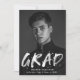 Anuncie sua formatura com nossos anúncios de graduação de fotos do Modern Paint Splatter. O design apresenta a foto vertical do formando com "Formando" em letras brancas com placas de tinta brancas. Personalize a frente dos anúncios de graduação criativa adicionando o nome do formando, o nome da escola e o ano de graduação. A parte de trás do anúncio apresenta um fundo preto com placas brancas de tinta. O design é perfeito para usar tanto para segundos graus como para formandos universitários.