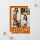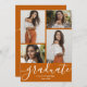 Adicione suas quatro fotos favoritas à frente desses anúncios de graduação apresentando a palavra formando, seu nome de formando e ano de aula em letra chic em um fundo de cor laranja queimado. Personalize seus detalhes. Mais designs e cores feitas em nossa loja, incluindo convites de festas, cartões salve a data e postais.