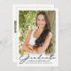 Anuncie a conquista do seu formando com este cartão de anúncio fotográfico com um moderno FORMANDO de tipografia escrita à mão, acentuado com um falso boné de formatura metálico de folha de ouro e 5 fotos (1 na frente e 4 na parte traseira). O verso oferece um lugar para incluir informações adicionais sobre as realizações, atividades e planos futuros de seu formando, conforme desejado. ASSISTÊNCIA: para obter ajuda com a modificação ou personalização do design, alteração de cor, transferência do design para outro produto ou, se você quiser coordenar itens, entre em contato com o designer ANTES DE ENCOMENDAR através da guia MENSAGEM de bate-papo Zazzle ou envie um email para makeitaboutyoustore@gmail.com.