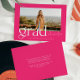 Este anúncio de graduação moderno e moderno apresenta uma paleta de cores rosa e branca quente e uma grande foto do seu formando. Um "Formando" ousado e na moda adornando a frente. A parte traseira da placa tem um tipo simples que lhe permite saber mais sobre seu formando e seu plano para o futuro. Ou pode mudar para um convite festa de formatura. Você pode encontrar outras versões deste design na minha loja Zazzle.