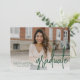 Anúncio de graduação moderno com sua foto horizontal na frente com "formando" exibido em uma cobertura de script verde manuscrita. Personalize a frente do anúncio de graduação de fotos com o nome do formando, o nome da escola e o ano de graduação. O simples anúncio de graduação é revertido para exibir uma foto adicional com espaço fornecido para incluir os planos de formando, detalhes de graduação, etc. O anúncio da graduação de duas fotos é perfeito para segundos graus e formandos!