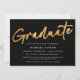 Este é um anúncio de graduação minimalista e elegante. Ele usa um design de script moderno e na moda, manuscrito, em preto clássico e chico, branco e ouro, com uma foto no verso. Entre em contato com o designer para obter informações sobre este design.