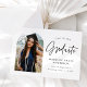 Anúncio de graduação da Tendy com a foto do formando moldada por um arco branco com "Formando" em um roteiro manuscrito preto. Personalize a frente do cartão de anúncio de graduação em março adicionando o nome do formando, o ano de graduação, o nome da escola e os planos futuros. O anúncio de graduação de fotos é revertido para exibir um padrão pontilhado preto e branco. O anúncio é adequado para formandos de segundo grau e de faculdade.
