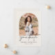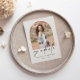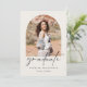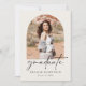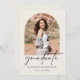 Um anúncio elegante de graduação de segundo grau minimalista para 2024. Este simples design tem um fundo de cor de creme com arcos no estilo boho na frente e atrás para compartilhar fotos do formando com a família e os amigos. Uma forma excelente de anunciar a realização do formando em estilo e personalizar com a mensagem personalizada no verso.