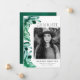 Anuncie sua formatura com nossos anúncios de na moda e modernos de graduação de fotos. O design apresenta uma borda de cristais de aquarela pintados em tons de verde esmeralda. O "Formando" é apresentado numa fonte de serifa negra moderna. Personalize o único anúncio de graduação adicionando sua foto, seu nome, nome da escola e ano de graduação. A carta se inverte para exibir um belo fundo verde-d'água esmeralda.