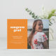 Anuncie a grande conquista do seu formando com este anúncio de graduação simples, mas na moda. Ele apresenta as palavras "felicats formando" em uma fonte branca com estilo retrorreflector em um fundo laranja, assim como espaços para uma foto na frente e no verso. O verso do anúncio também tem espaço para uma nota pessoal sobre o formando, incluindo planos futuros.