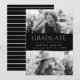 Celebre seu formando um marco emocionante com esses anúncios de graduação modernos! Os dois anúncios de graduação de fotos apresentam "Formando" no centro da design em letras brancas modernas e fundo preto com bordas rasgadas. Personalize o anúncio adicionando o nome do formando, o nome da escola e o ano de graduação. A placa reverte para exibir um padrão listrado preto e branco texturizado.