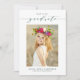 Anuncie sua formatura à família e amigos com este cartão de graduação de 2022, que pode ser personalizado. Apresenta caligrafia branca verde e tipografia clássica. Personalize este simples cartão de anúncio de graduação adicionando sua foto, seu nome e o nome da escola. Este cartão de anúncio de graduação de fotos de script é perfeito para segundo grau ou formandos.