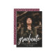 Anúncio de graduação simples que apresenta a foto do formando com "formando" em uma fonte de script tradicional branco. Personalize a frente do anúncio de graduação de fotos adicionando o nome do formando, o nome da escola e o ano de graduação. O anúncio é revertido para exibir um padrão de aspersão branca com um fundo de marrom ou cor de sua escolha.