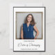 Um anúncio moderno de graduação de fotos para um formando de doutorado. A foto é uma modelo que deve ser trocada por você. Basta adicionar sua foto e informações, adicionar este anúncio ao seu carrinho e contar a todos sobre essa grande conquista. Design de Férias de Dia de Férias do PhD minimalista | ©Melissa Patton - Designer