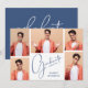 Adicione suas cinco fotos favoritas à frente desses anúncios de graduação e convites de festas com formando em letra azul-chic na cor da sua escola. Mais detalhes sobre o fundo da sua coloração escolar. Altere as cores com nossas ferramentas de edição. Mais designs e cores feitas em nossa loja, incluindo convites, cartões salve a data e postais.
