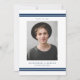 Anuncie a sua formatura à família e amigos com este cartão personalizável de 2023 para o lançamento de fotos. Apresenta tipografia clássica e sotaques duplos. Personalize este anúncio de graduação em azul e branco do marinho adicionando uma foto, um nome, uma escola e outros detalhes. Este simples anúncio de graduação de fotos está disponível em outros estoques de papelão.