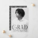 Comemore sua conquista de formando com este anúncio de graduação simples e elegante. Apresentando a foto vertical do formando, a palavra "Formando" é mostrada em negrito preto, uma letra moderna de deco de arte, criando um na moda e um design contemporâneo. Personalize a frente deste anúncio de graduação em solteiro-foto, adicionando o nome do formando, a escola e o ano de graduação. O verso apresenta um padrão sofisticado de espiral geométrica preto e branco, oferecendo um toque elegante de acabamento. Perfeito para formandos segundos graus ou universitários, este anúncio personalizável é a maneira ideal de compartilhar esse marco especial com a família e os amigos.