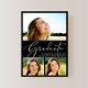 Um anúncio de graduação em preto simples e elegante, com uma colagem de 3 fotos do formando sobrecarregado com "Formando" em um roteiro branco na moda, e seu nome, ano de aula e escola em letras brancas modernas.