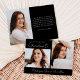 Anuncie suas conquistas e planos de seu formando, com este anúncio moderno da graduação de fotos. A frente do anúncio exibe 2 fotos - 1 fotos horizontais e 1 fotos verticais. O "Formando" é exibido em um script branco de tendências, manuscrito com um fundo preto. Personalize o anúncio de graduação em preto-e-branco com o ano e o nome do formando. O anúncio é revertido para exibir uma foto adicional com seu texto personalizado em letras brancas. Este anúncio de 3 fotos é perfeito para segundos graus ou formandos.