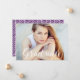 Anúncio de graduação elegante com "Formando" exibido em uma camada branca de script. Personalize a frente do anúncio moderno da graduação de fotos com sua foto horizontal, nome e ano de formatura. O anúncio se reverte para exibir um padrão de aringóvia roxa e desenhada à mão branca.