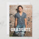 Simples anúncio de graduação de fotos com cobertura de tipografia. A palavra Formando usa uma fonte legal em apuros. Adicione sua foto especial, nome, escola e classe de 2023 (ou edite). Veja a coordenação de itens no nosso compro, Encantado Finch.