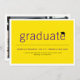 Um moderno e minimalista cartão com fotos de anúncio de graduação, com uma simples tipografia em negrito, com conselho de argamassa/sotaque de boné de formatura em uma camada de fundo de cor amarela plana, que pode ser personalizada e alterada para qualquer cor personalizada de sua escolha. A foto de trás pode ser removida para adicionar seu próprio texto personalizado. Concebido por gordura*fa*estanho. Fácil de personalizar com seu próprio texto, foto ou imagem. Para pedidos personalizados, entre em contato direto com o . Aplicam-se as taxas personalizadas. www.zazzle.com/collections/graduation_invitations-119988321070623801 www.zazzle.com/collections/graduation_thank_you-119015369615228414 www.zazzle.com/fat_fa_tin www.zazzle.com/color_therapy www.zazzle.com/fatfatin_blue_knot www.zazzle.com/fatfatin_mini_me www.zazzle.com/fatfatin_box www.zazzle.com/fatfatin_design www.zazzle.com/fatfatin_ink