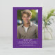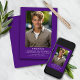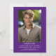 Avise sua família e amigos sobre esse marco empolgante em sua vida com nosso moderno anúncio de graduação simples de fotos! Adequado para caras ou meninas, esta versão roxa profunda com texto branco vem com lugares para sua foto, detalhes de graduação e um verso Bíblia (mas sinta-se livre para substituir pelo seu verso ou citação favoritos). Procure mais opções e acessórios em nossa 🎉 de Coleção de Graduação