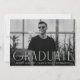 Anúncio simples de graduação com a foto horizontal do formando com "Formando" exibido na letra verde-menta da arte moderna. Personalize a frente do anúncio de graduação em fotos do solteiro adicionando o nome do formando, a escola e o ano de formando. O anúncio é invertido para exibir um design de espiral geométrico verde e branco da casa da moeda.