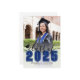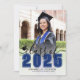 Um anúncio clássico, mas moderno, de graduação. A frente apresenta uma foto de página de cheio com um gradiente branco na parte inferior que desaparece perfeitamente na imagem. Sobre o gradiente, "2025" aparece em uma fonte azul e corajosa no estilo escolar clássico. Logo acima, "classe de" é escrita em um roteiro preto elegante. À esquerda do ano está um pequeno ícone de boné de formatura personalizável, que você pode alterar para corresponder ao seu esquema de cores. Abaixo do ano, o nome do formando e o nome da escola são exibidos com destaque. O verso mostra uma segunda dentro de foto por retângulo arredondado, com espaço abaixo para uma nota sincera dos pais, destacando realizações e expressando orgulho. Totalmente personalizável, você pode editar o texto, as fontes e as fotos para ajustado do seu estilo. Perfeito por celebrar este grande marco.