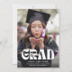 Este anúncio de graduação moderno apresenta uma foto vertical do quadro do cheio e uma tipografia retrô, ainda elegante, na frente. No verso há outra foto com texto para uma festa de formatura / casa aberta. Este texto / foto do convite no verso também pode ser excluído. Todas as cores neste design são personalizáveis.