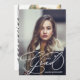 Sua foto, seu nome, ano de graduação e a palavra Formando em letras brancas em chic na frente, esses anúncios de graduação apresentam seus detalhes e outra foto no fundo QUALQUER COR que se adapte à sua foto. Mais estilos, tamanhos, cartões salve a data, convites em nossa loja.