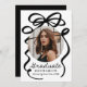 Celebre a conquista do seu formando com este anúncio elegante de graduação, com um arco preto e uma design de fita em um fundo branco. A foto circular do formando é lindamente enquadrada pelo arco, enquanto o "Formando" é mostrado em um roteiro escrito à mão na moda. Abaixo, personalize com o nome do formando, a escola e o ano de graduação para um toque de eterno. A parte de trás contém uma foto e um espaço adicionais para uma mensagem personalizada, fazer este design perfeito para formandos segundos graus e universitários. Anuncie este marco em estilo com uma habilidade sofisticada e moderna!