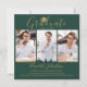 Este elegante cartão de anúncio de graduação em chic pode ser personalizado em letras douradas em um fundo verde esmeralda com suas 4 fotos de formando especial. Projetado por Thisnotme©