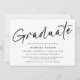 Este é um anúncio de graduação moderno e simples. Ele usa um design de script manuscrito mínimo e na moda em preto e branco clássico, com uma foto no verso. Este design aplica um filtro preto e branco à sua foto, para remover ou alterar este, pressione o botão azul para editar o design, selecione a foto e edite as configurações do filtro de acordo. Entre em contato com o designer para obter informações sobre este design.