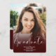 Um moderno e simples formando branco sobre o roteiro vermelho-burgundy com 2 fotos de anúncio de graduação. Adicione sua mensagem no verso.