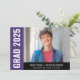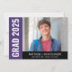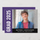 Anuncie sua graduação de segundo grau em estilo com este cartão personalizado de graduação de fotos. Este design moderno apresenta sua foto à direita, junto com roxo à esquerda e preto abaixo, com tipografia branca para seu nome, escola e ano para personalizar. Parabéns pela sua formatura! Projetada por uma ©Susan Coffey.
