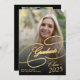 Anúncio de graduação em na moda-preto e ouro de Elegante clássico com script de caligrafia em segundo grau universitário na faculdade com 2 fotos personalizadas e modelo de texto.