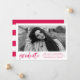 Anuncie sua formatura com nossos anúncios de graduação de na moda, Modern Watercolor Brush Script! Os modernos anúncios de graduação exibem a foto do formando moldada em branco com "formando" em um roteiro de pincel de aquarela rosa-quente. Adicione o nome do formando, a escola, o ano de graduação e os planos futuros. O anúncio se reverte para um fundo listrado rosa e branco quente com espaço para fotos e texto adicionais.