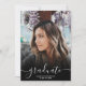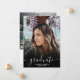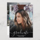 Anúncio de graduação do formando preto e branco 4 fotos. Adicione 4 de suas fotos favoritas com uma elegante caligrafia de script e colagem de grade de fotos.