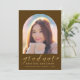 Envie à sua família e amigos um cartão único personalizado de anúncio de graduação de fotos 2025 para usá-los. Este modelo moderno apresenta uma foto em um quadro de arco para você mudar para o seu próprio fundo de marrom. Abaixo de sua foto está a palavra "Formando" na tipografia moderna de script faux gold e seu nome, segundo grau e ano para personalizar. Desenhada por Susan Coffey.