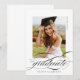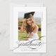 O Anúncio de Graduação em Branco Negro de Script Elegante moderno apresenta um roteiro bonito e elegante, juntamente com os detalhes do seu partido e a sua foto de cheio no verso.