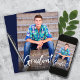 Anúncio de Graduação de Script de Traçado em Pincel Moderno com sua foto e nossa cobertura de script em branco A parte de trás é um marinho azul moderno, mas todas as fontes e cores são facilmente modificadas. Perfeito por comemorar seu formando! Muito moderno e perfeito para a graduação masculina. Entre em contato conosco em cedarandstring@gmail.com se precisar de assistência com o design ou produtos correspondentes.