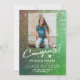 Anúncio de graduação de segundo grau de brilho feminino em verde brilhando ombre com script de tipografia branca e boné superior. ++++++++++++ Fácil de personalizar com o nome, classe, escola e foto do formando.