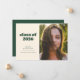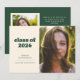 Este anúncio de graduação inspirado em verde escura e esbranquiçado coloca o foco no seu formando com uma foto de solteiro na frente e no verso. O verso do lançamento também tem espaço para gravar uma mensagem curta ou atualizar.