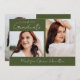 Anuncie suas conquistas e planos de seu formando, com este anúncio moderno da graduação de fotos. A frente do anúncio exibe 2 fotos - 1 fotos horizontais e 1 fotos verticais. O "Formando" é apresentado num roteiro, manuscrito, branco, com fundo verde-oliva. Personalizar o anúncio da graduação em verde-oliva com o ano e o nome do formando. O anúncio é revertido para exibir uma foto adicional com seu texto personalizado em letras brancas. Este anúncio de 3 fotos é perfeito para segundos graus ou formandos.