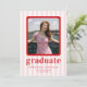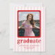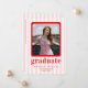 Comemore em estilo com o nosso cartão de anúncio de chic e de graduação moderna. Apresentando as listras brancas e cor-de-rosa lúcidas como pano de fundo, este design é enfeitado com texto vermelho em negrito para um talento vibrante e contemporâneo. Perfeitamente adaptado para mostrar suas fotos queridas, é uma maneira sofisticada de anunciar sua formatura.