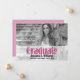 Comemore seu formando com este cartão de anúncio de graduação de fotos moderno e feminino. O design apresenta a palavra Formando em cintilação rosa, nome e uma foto em preto e branco sobre o fundo. A foto que você adiciona tem um filtro que a converte automaticamente para preto e branco. Você pode editar o filtro clicando no botão Personalizar. Na parte traseira da placa, você pode adicionar mais detalhes ou excluir e alterar a cor do plano de fundo.