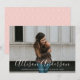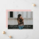 Anúncio de graduação elegante com a foto horizontal do formando e o nome do formando em uma cobertura branca de script de caligrafia. Personalize o anúncio de graduação de fotos, adicionando o nome da escola e o ano de graduação. O anúncio é revertido para exibir um padrão de lista branca e o fundo rosa-claro.
