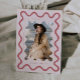 Cartão de anúncio de formatura simples e simples para enviar para a família e os amigos. Há uma mão desenhada à volta da sua foto com o nome do formando abaixo. Plano de fundo rosa embebido.